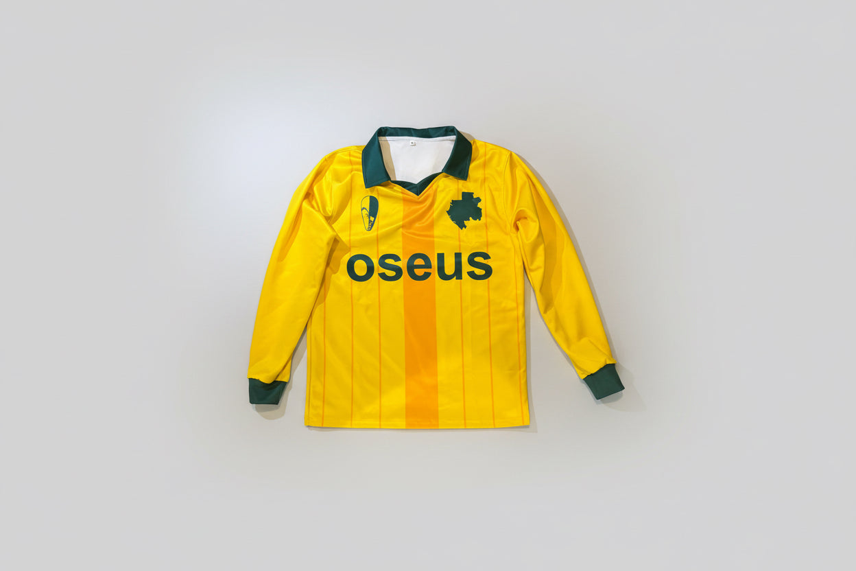Un jersey actif à manches longues unisexe pour femme ou pour homme en tissu technique. Col en V. Imprimé sublimé sur toute la surface.